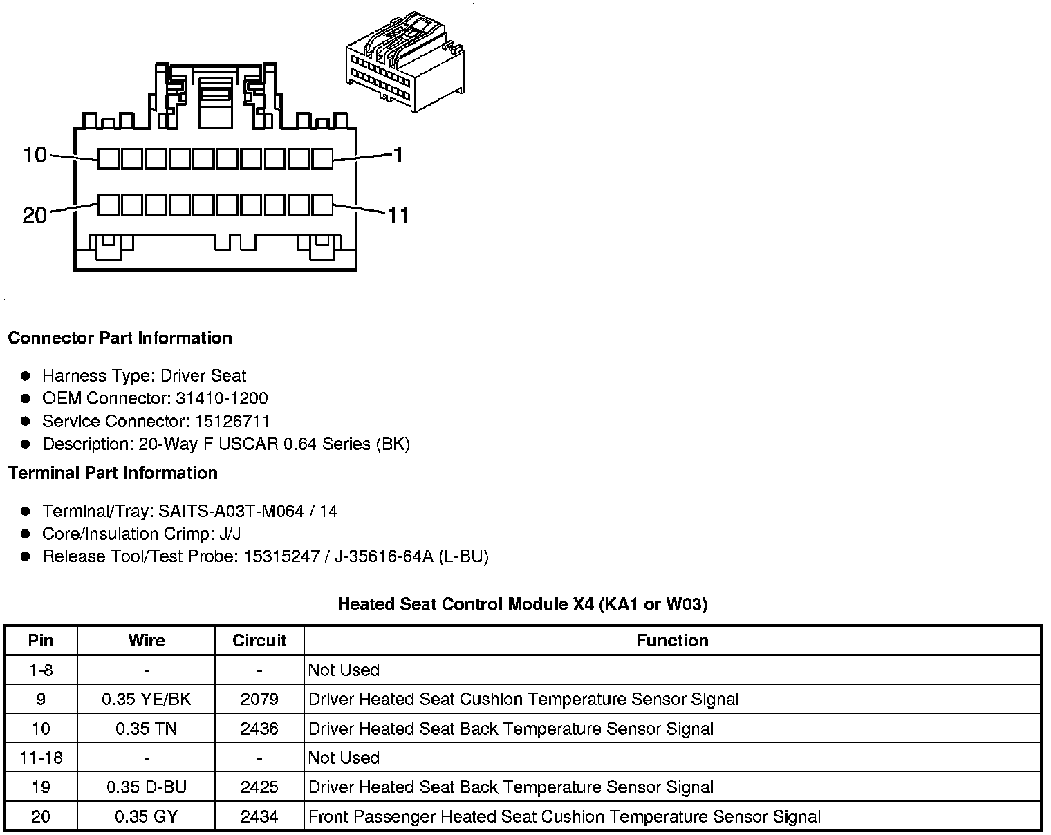 Heated Seat Control Module X4 (KA1 or W03)