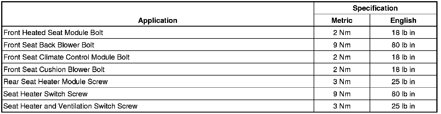 Seat Temperature Element: Specifications