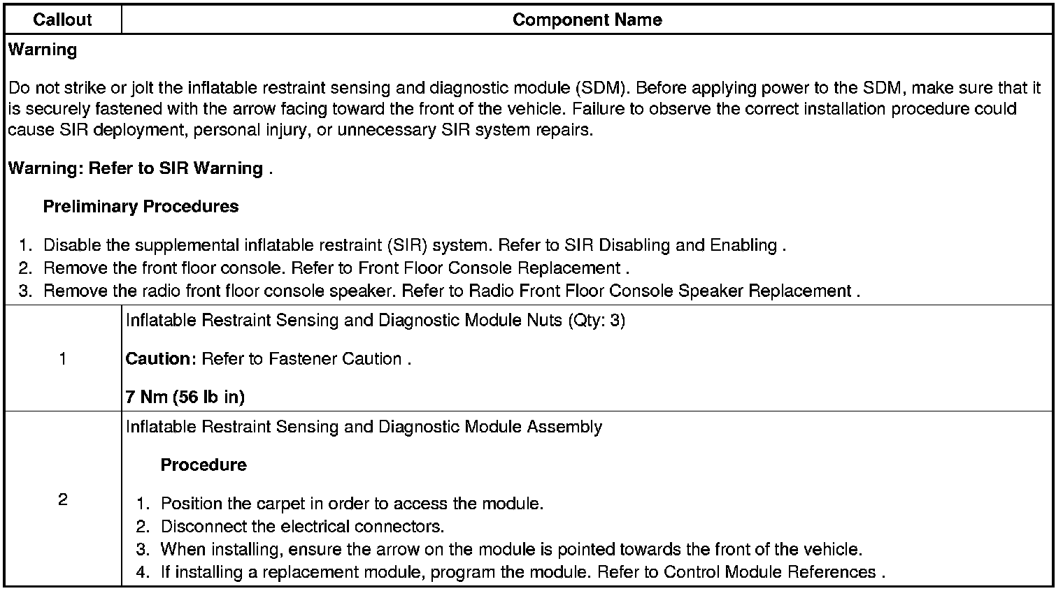 Inflatable Restraint Sensing and Diagnostic Module Replacement