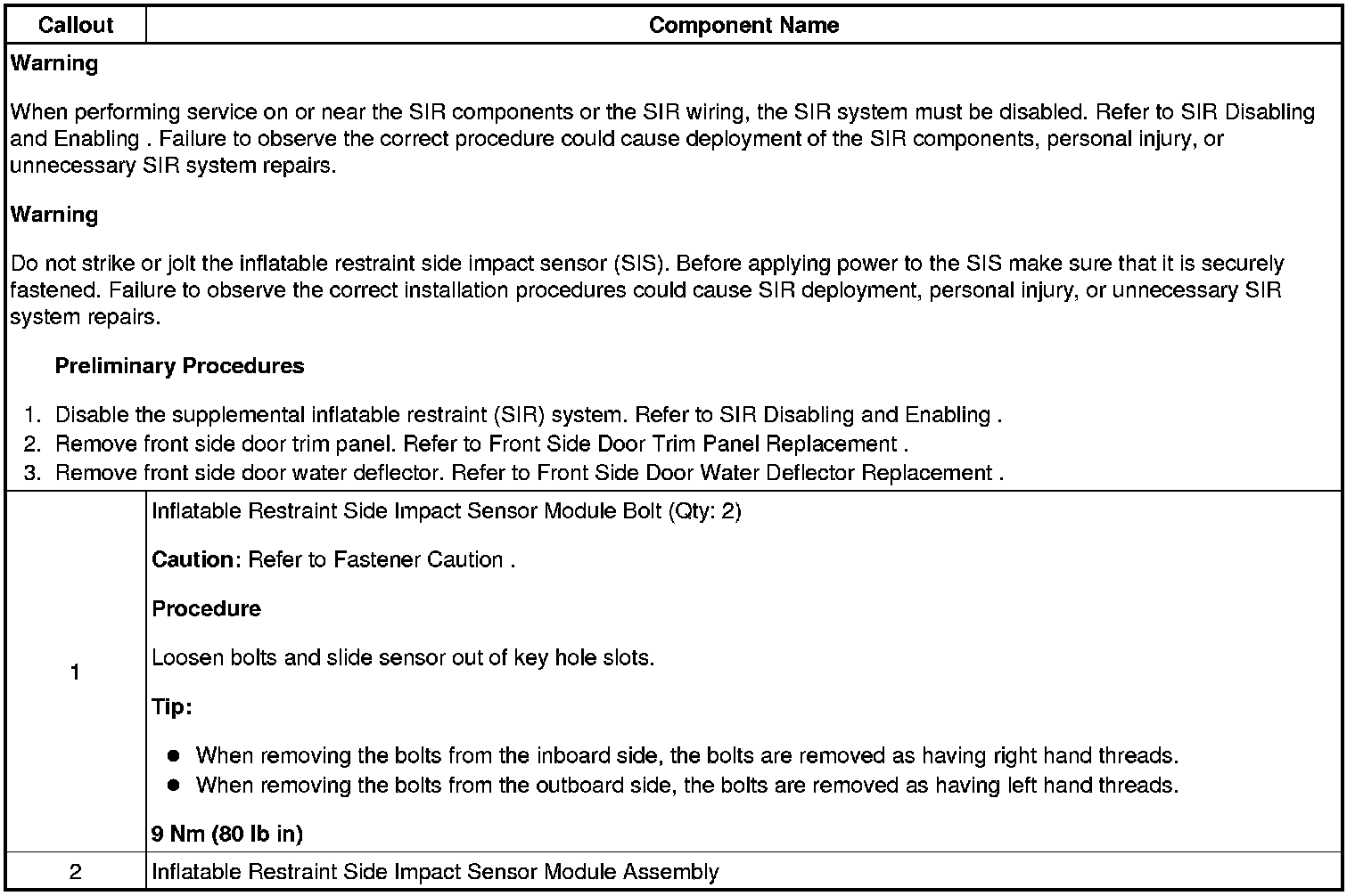 Inflatable Restraint Side Impact Sensor Replacement