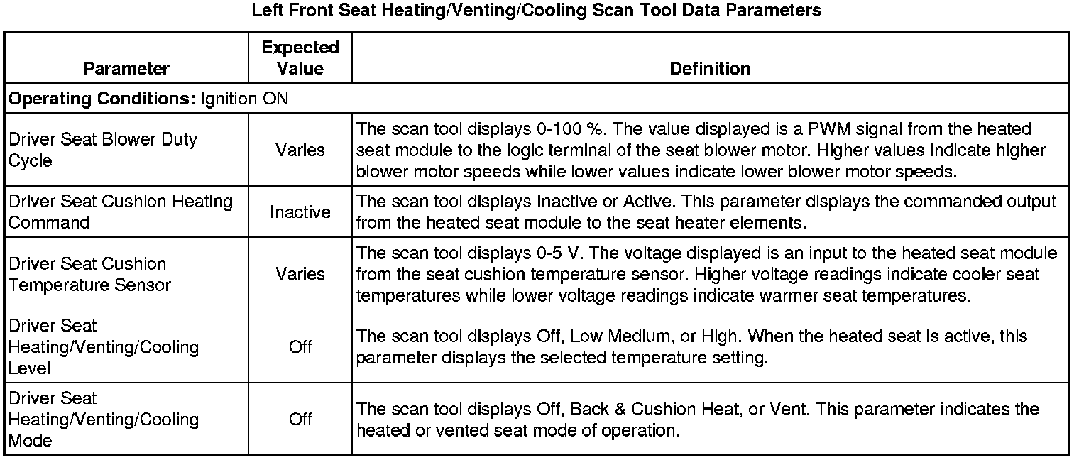 Driver Seat Adjuster Memory Module Scan Tool Information
