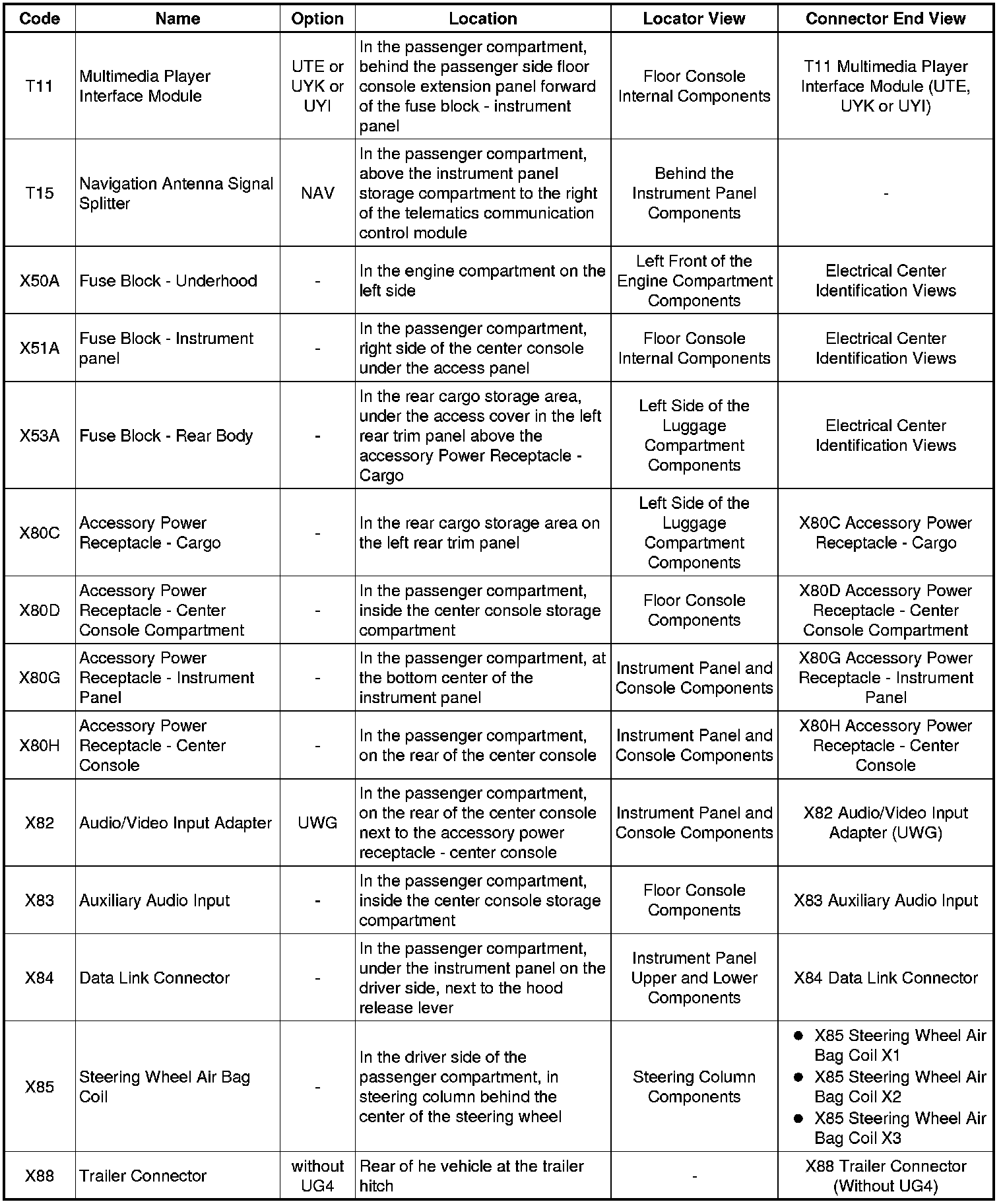 Master Electrical Component List