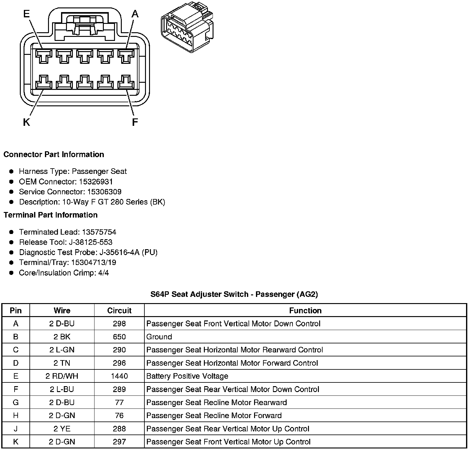 S64P Seat Adjuster Switch - Passenger (AG2)