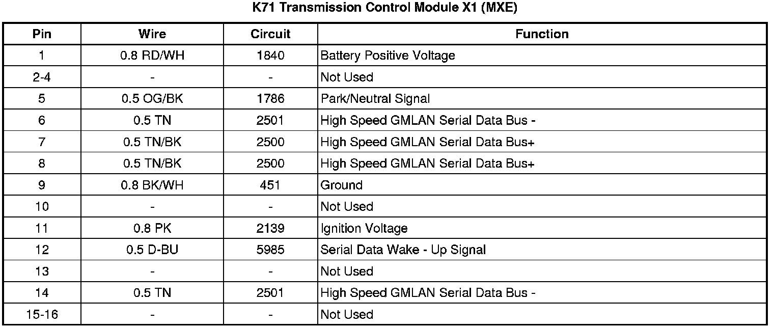 K71 Transmission Control Module X1 (MXE)
