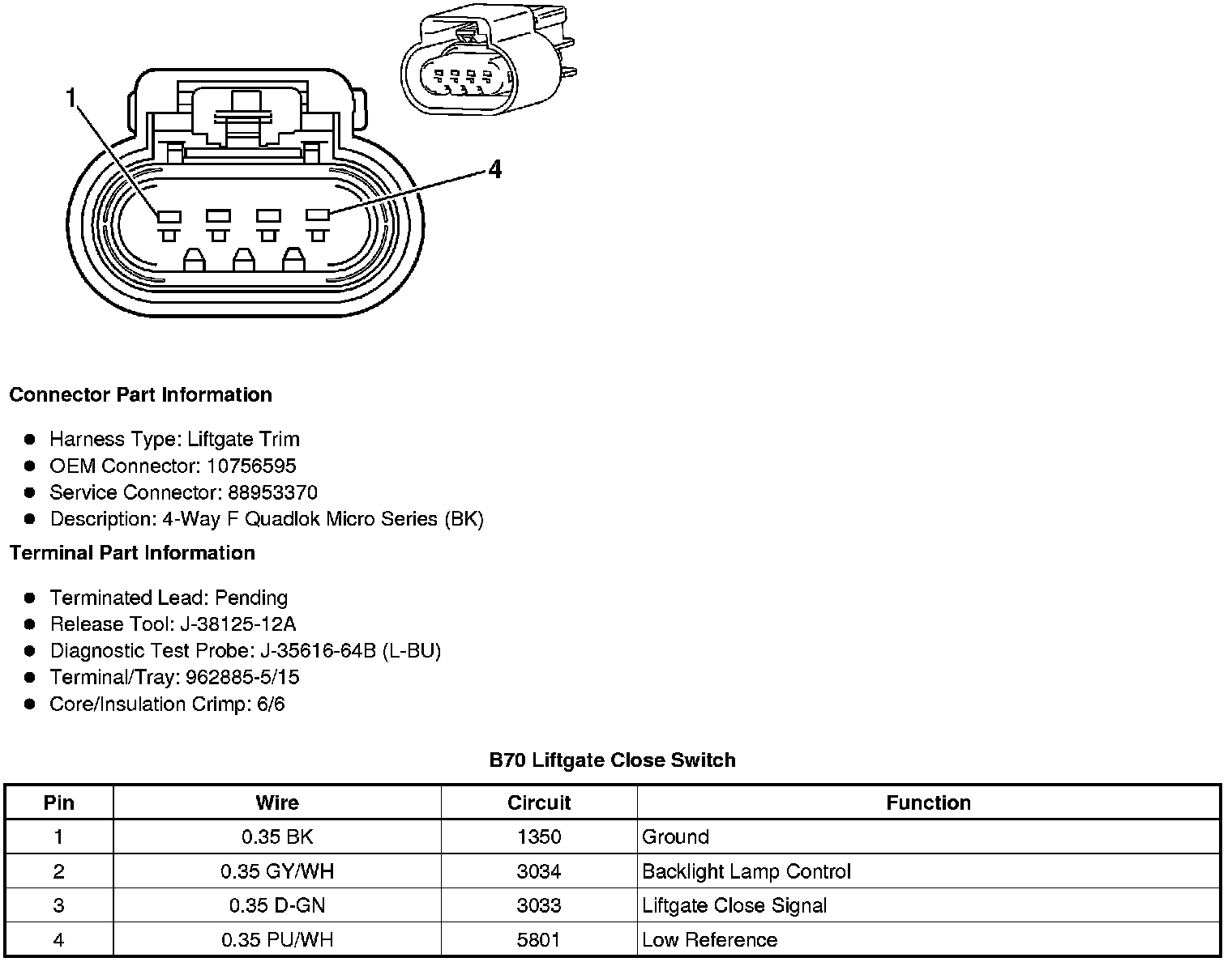 B70 Liftgate Close Switch