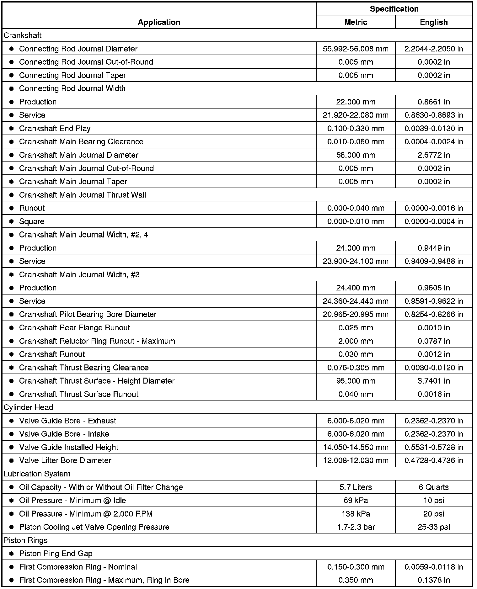 Engine Mechanical Specifications (LF1)