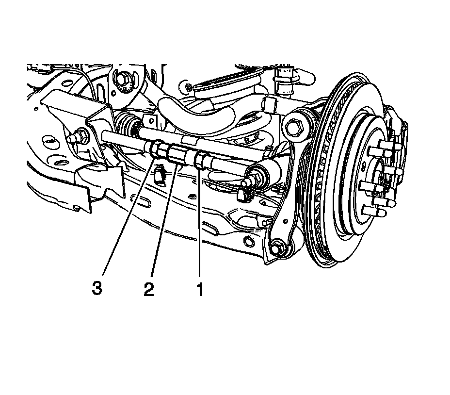 2. Rotate the rear suspension adjustment link (2) until the proper specification is achieved. Refer to Wheel Alignment Specifications (Wheel Alignment Specifications)