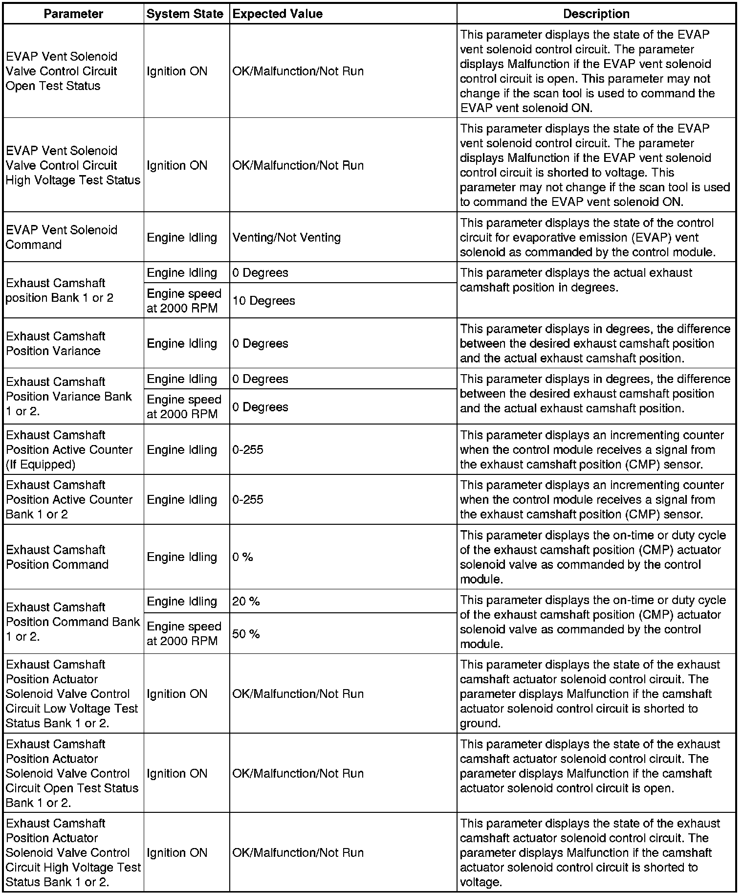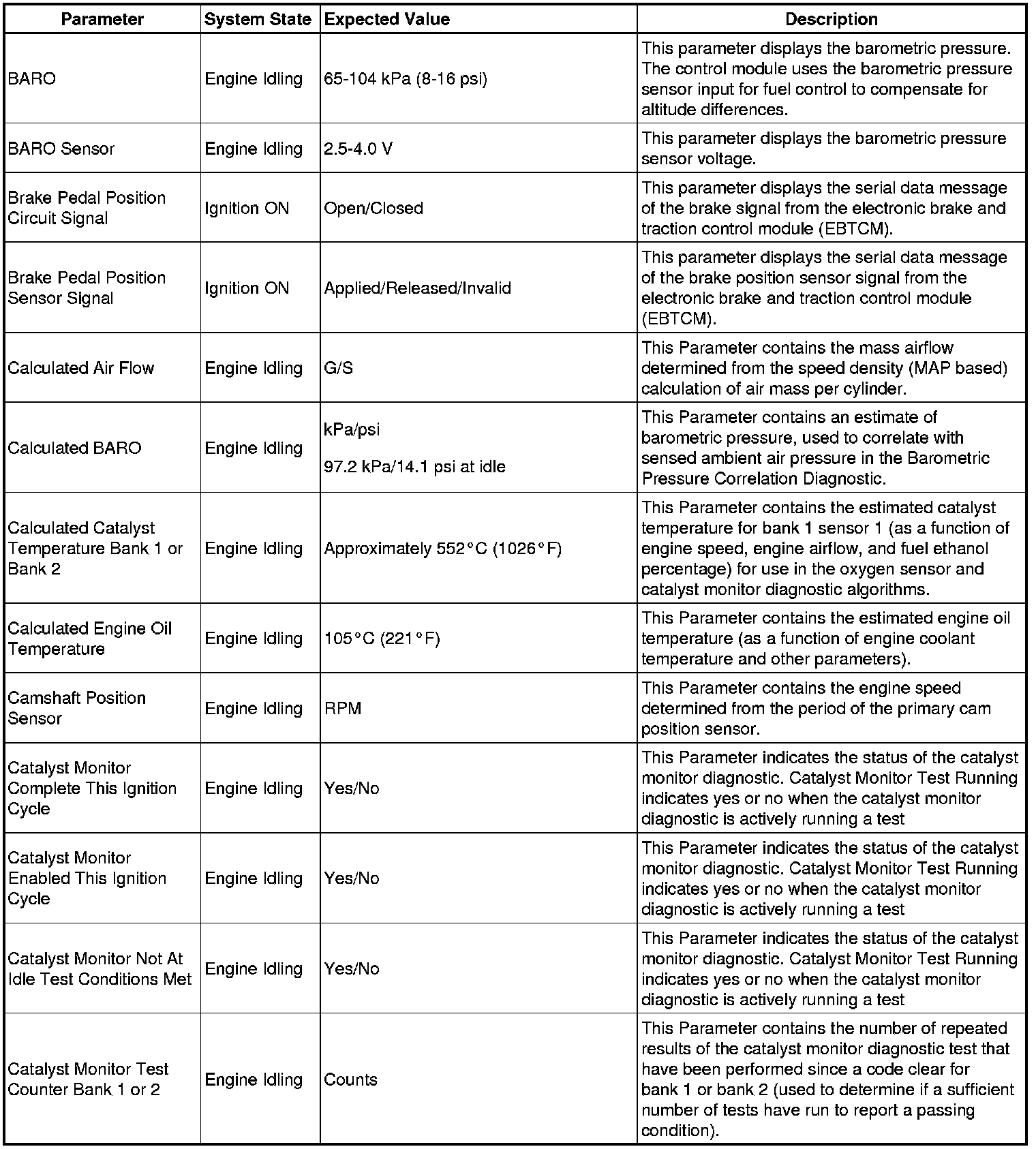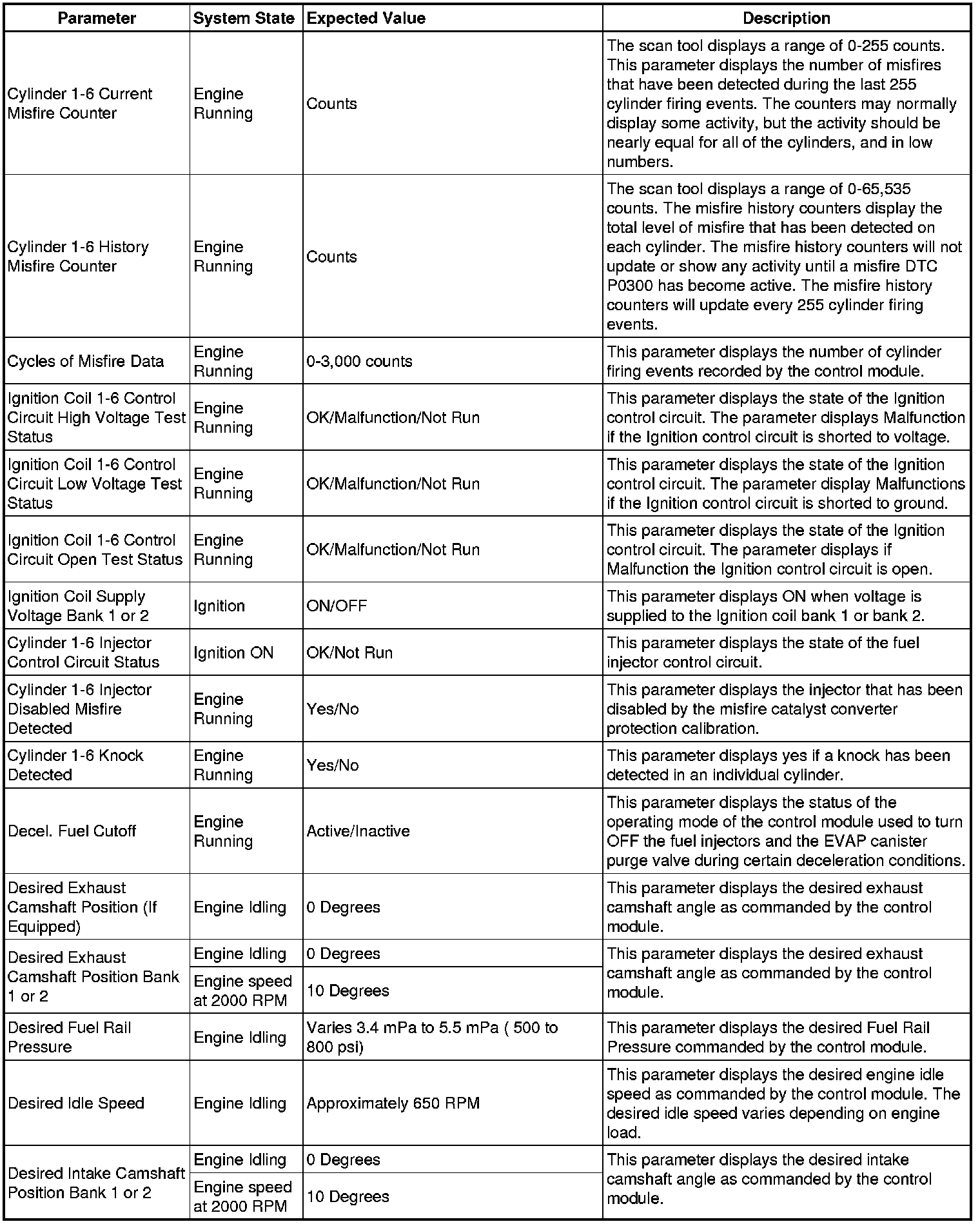 The Engine Control Module Scan Tool Data List contains all engine-related parameters that are available on the scan tool. The list is arranged in alphabetical order. A given parameter may appear in any one of the data lists, and in some cases may appear more than once, or in more than one data list in order to group certain related parameters together.