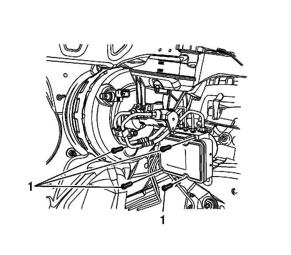 3. Install the EBCM bolts (1) and tighten in a cross pattern to 3 Nm (27 lb in).