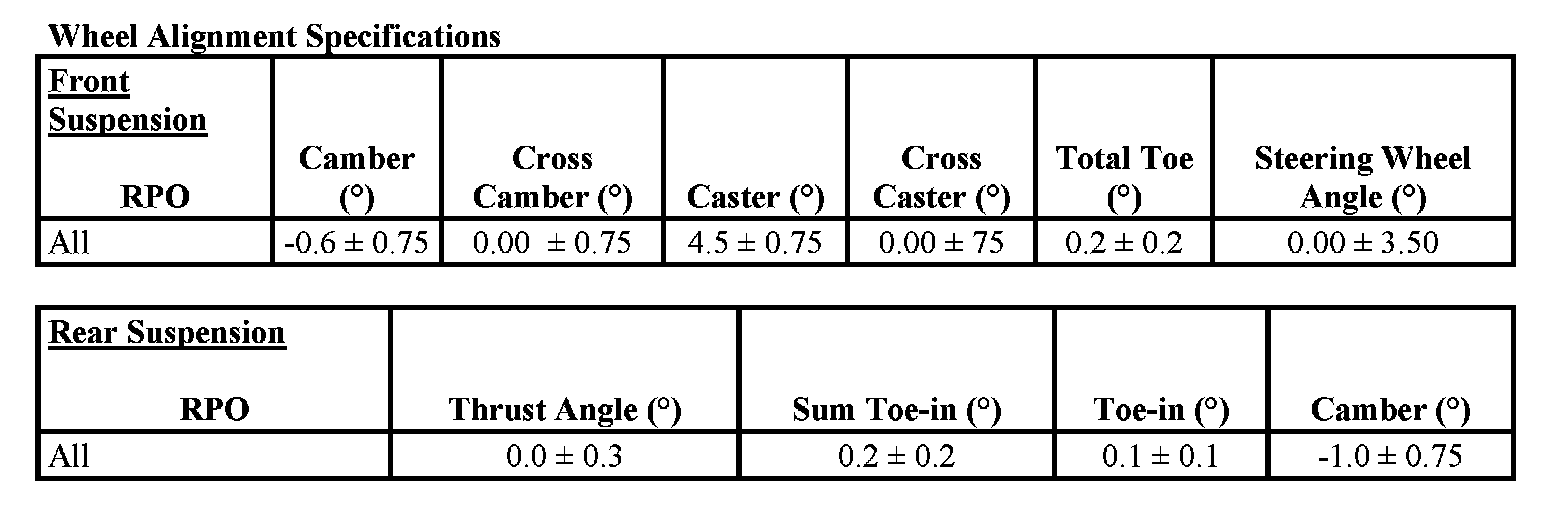 Wheel Alignment Specifications