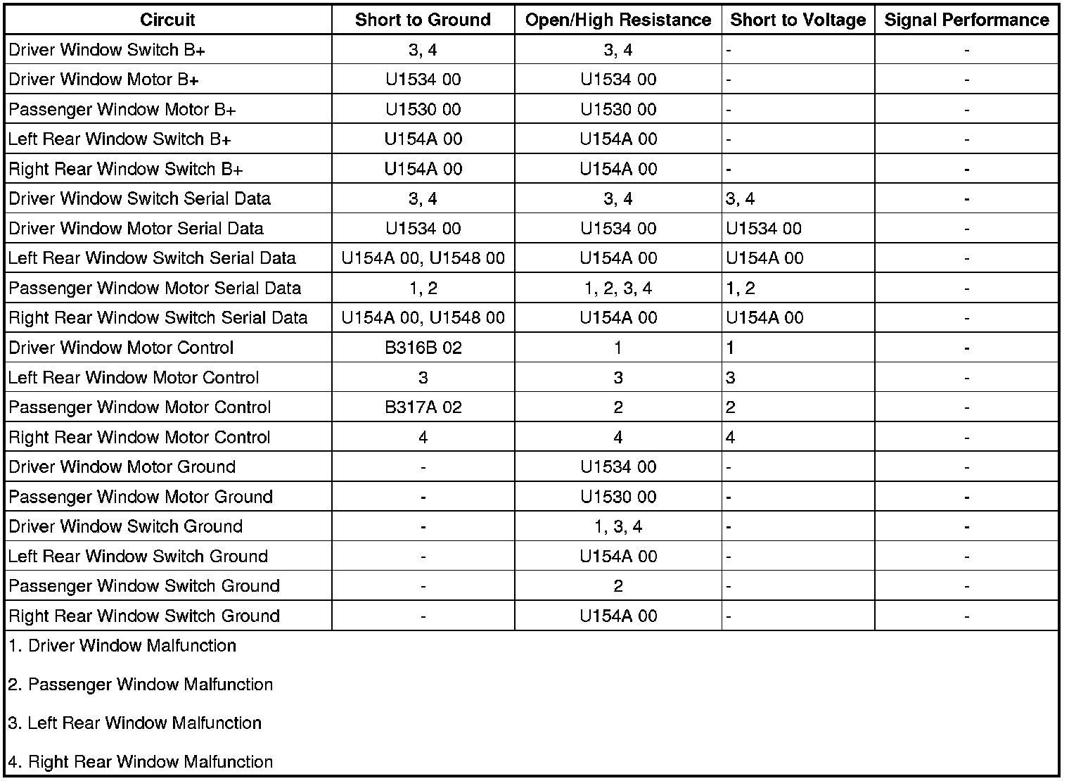 • If the driver window does perform as specified, refer to Driver Window Switch Malfunction.