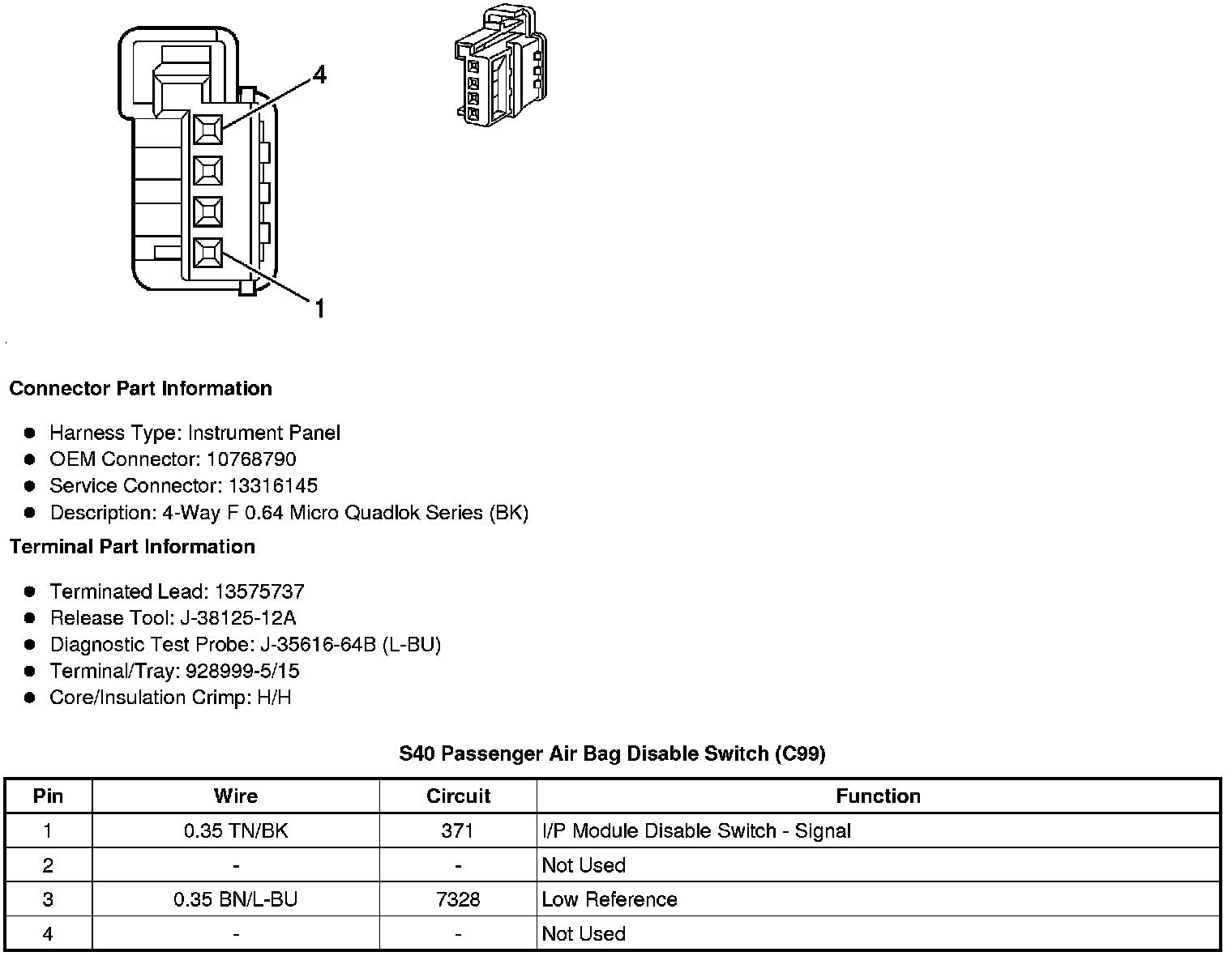 S40 Passenger Air Bag Disable Switch (C99)