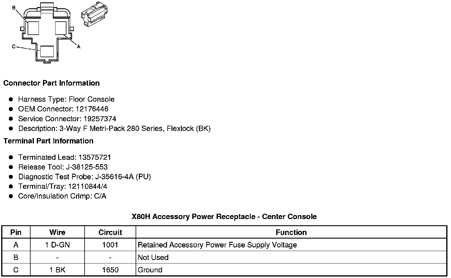 X80H Accessory Power Receptacle - Center Console