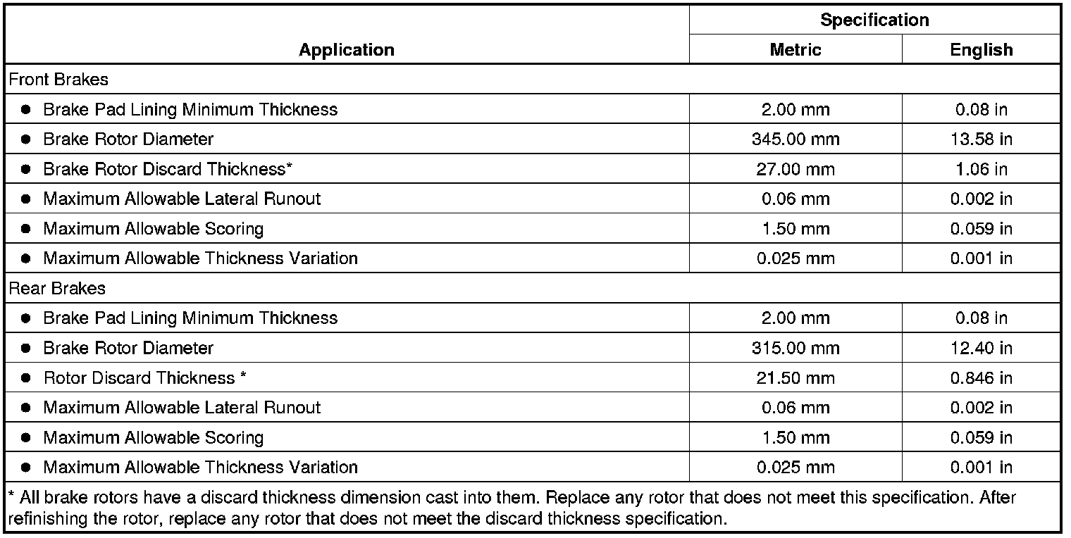 Disc Brake Component Specifications