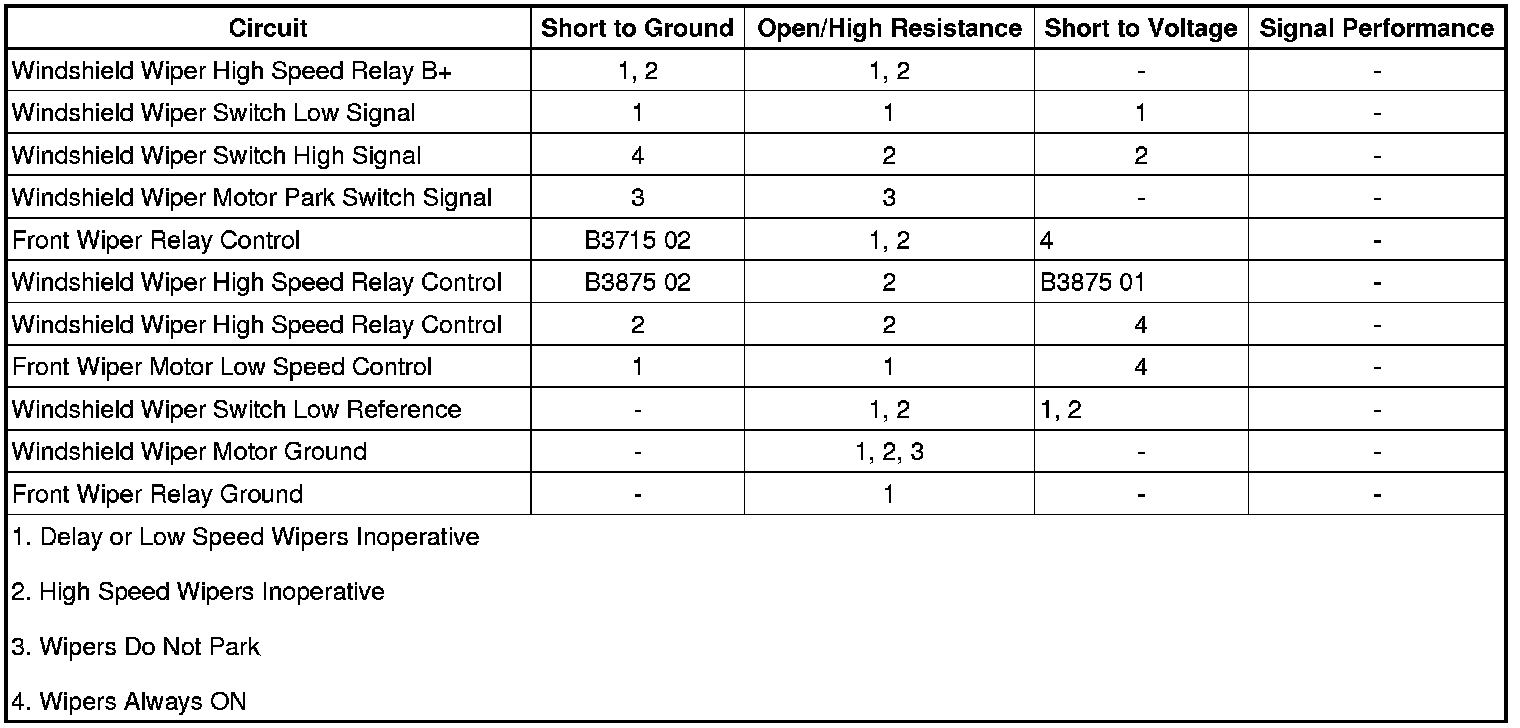 • If the wipers are not operating at high speed, refer to the Windshield Wiper Motor Circuit Test.