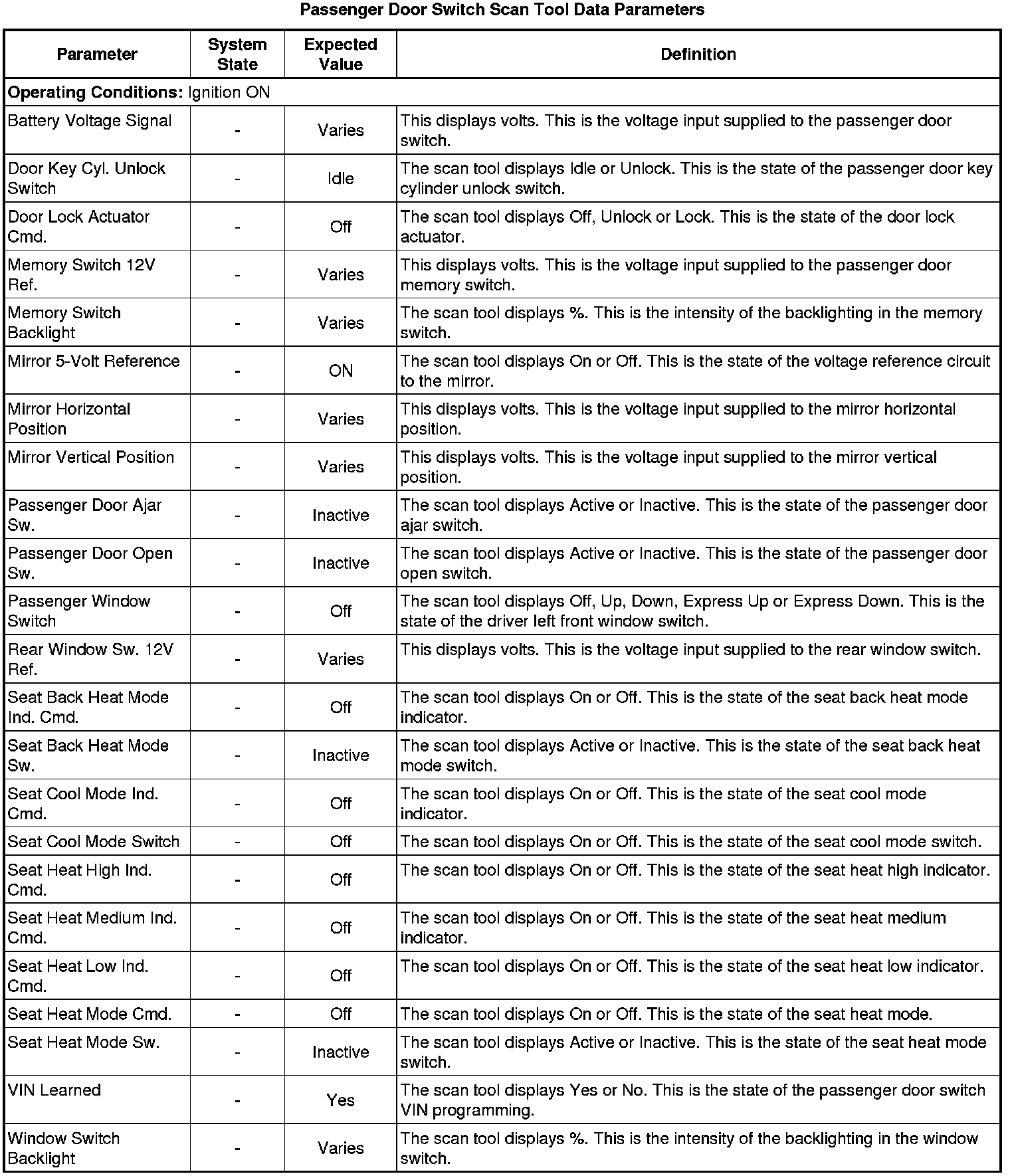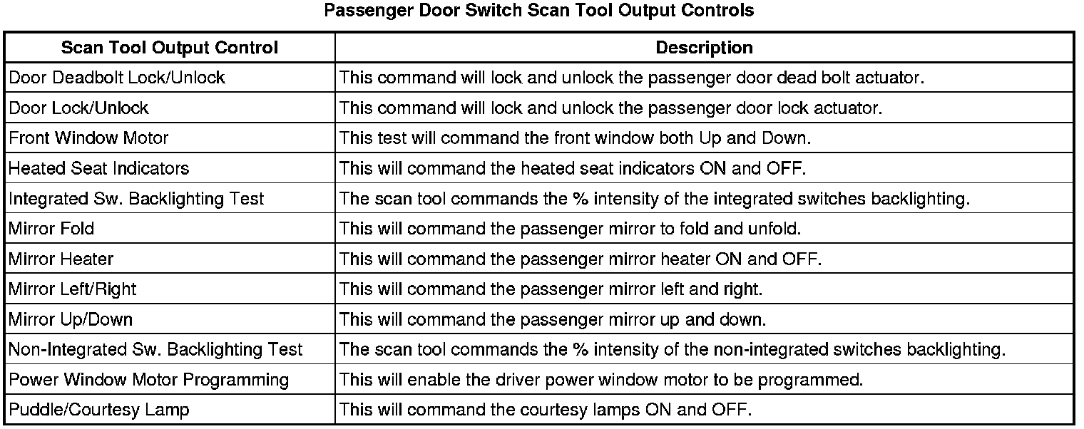 Door Lock Control Module Scan Tool Information (Passenger Door Lock/Window Switch)