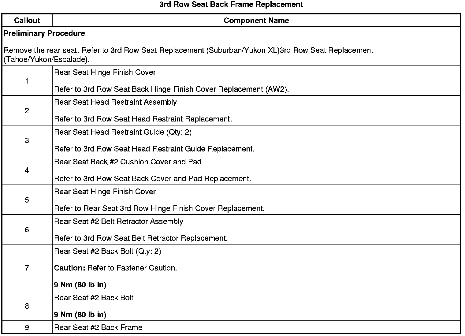 3rd Row Seat Back Frame Replacement