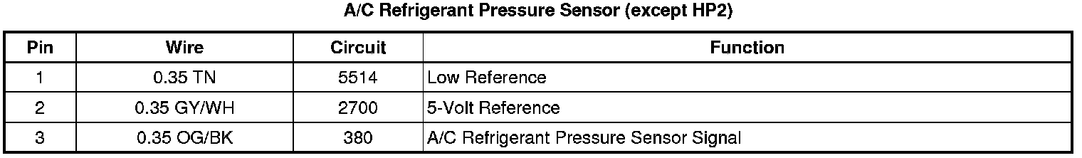 A/C Refrigerant Pressure Sensor (except HP2)