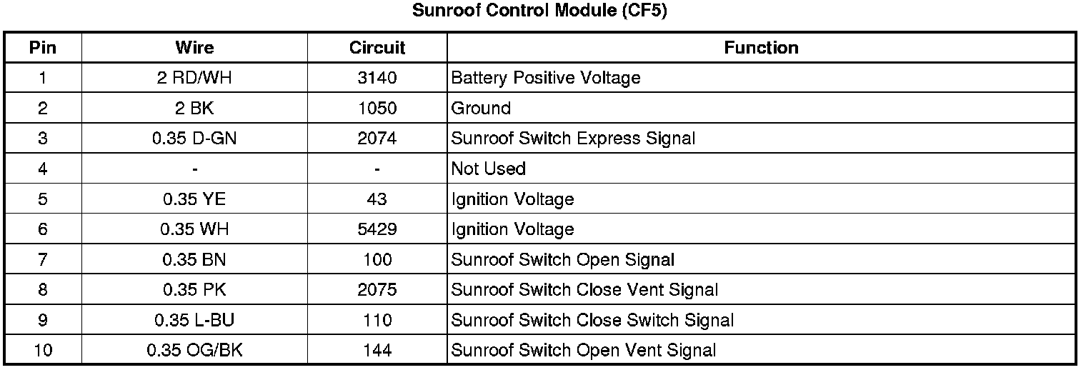 Sunroof Control Module (CF5)
