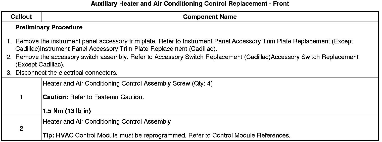 Auxiliary Heater and Air Conditioning Control Replacement - Front