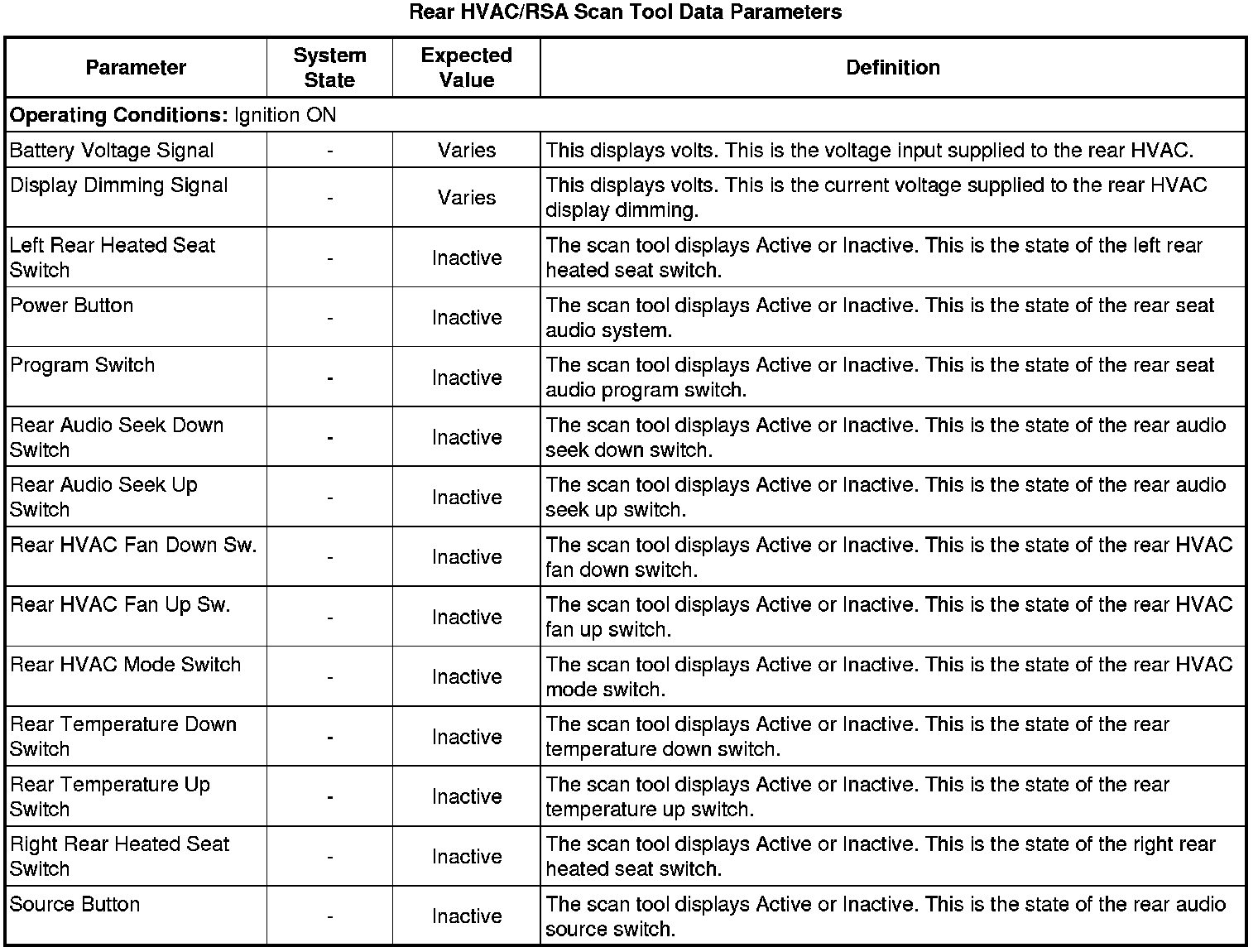 Auxiliary Heater and Air Conditioning Control Module Scan Tool Information