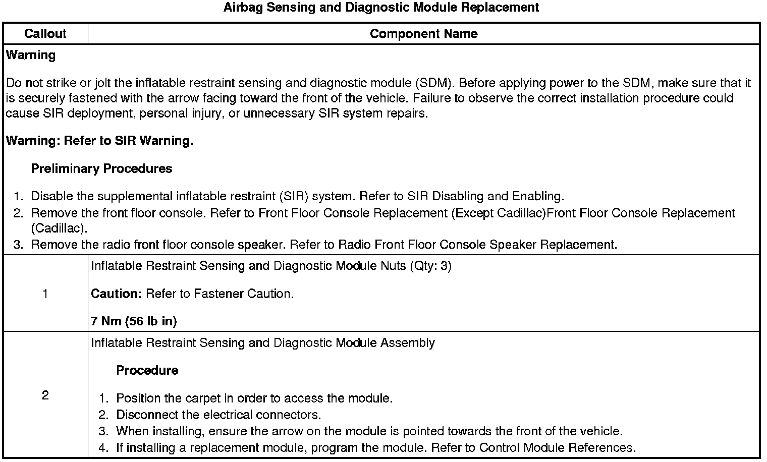 Airbag Sensing and Diagnostic Module Replacement