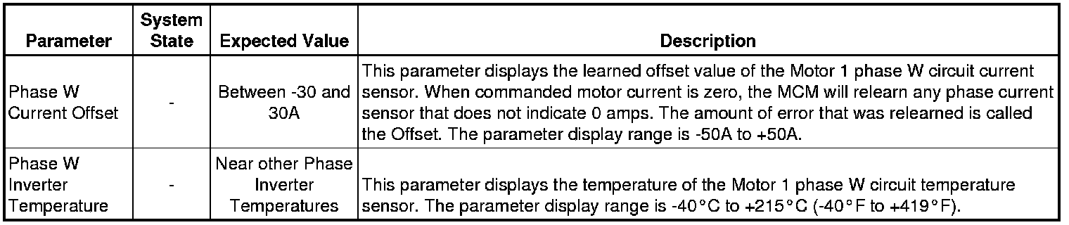 Only the parameters listed below are referenced in this service manual for use in diagnosis. If all values are within the typical range described below, refer to Symptoms - Hybrid Controls for diagnosis.