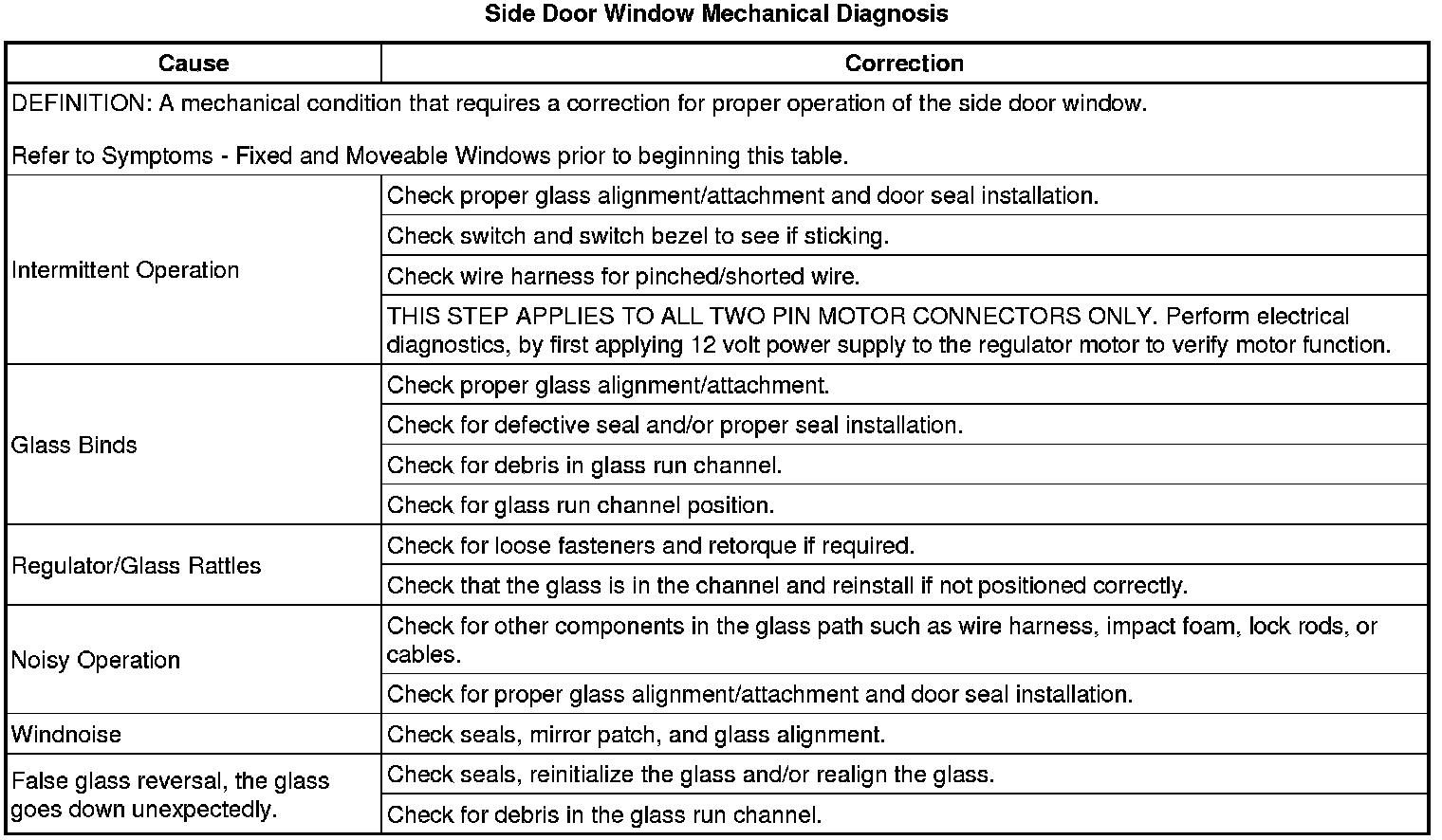 Side Door Window Mechanical Diagnosis