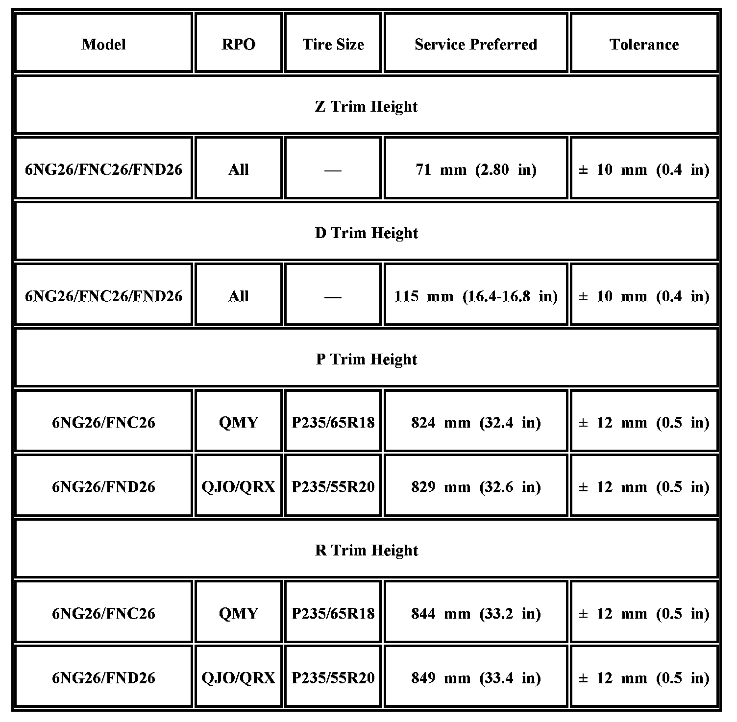 Trim Height Specifications