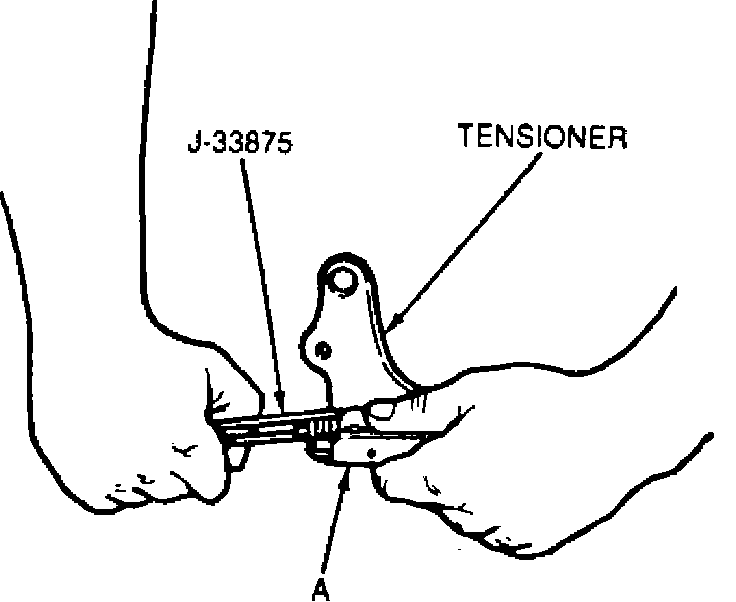 2. Compress tensioner spring using J-33875 (figure 7).