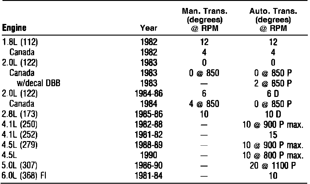 Ignition Timing: Specifications