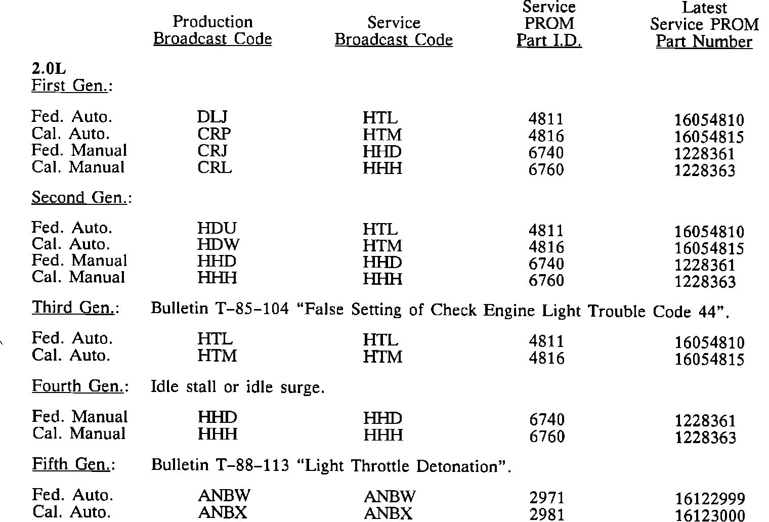 1985 J EQUIPPED WITH 2.0L EFI L-4 ENGINE