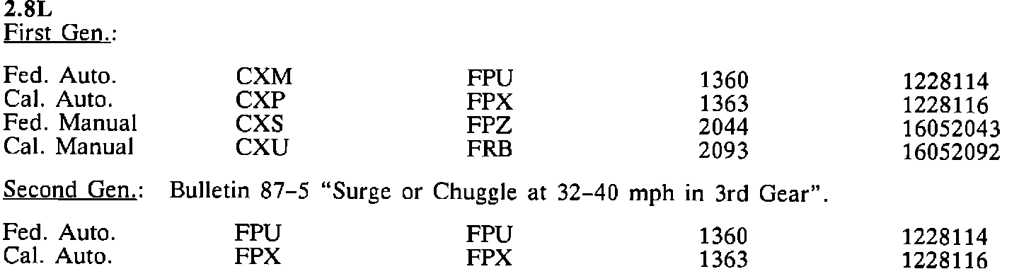 1985 J EQUIPPED WITH 2.8L PFI V-6 ENGINE