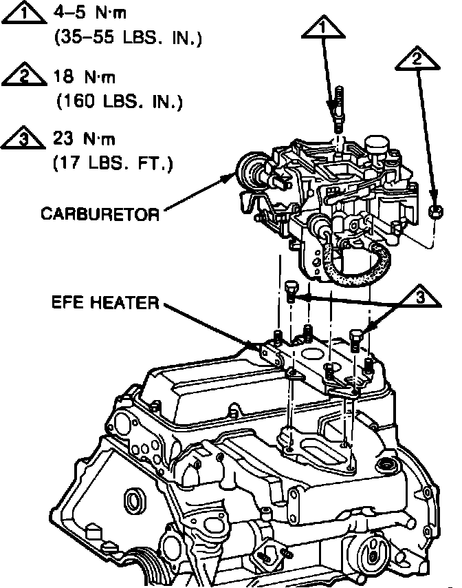 To repair this condition, normal service manual diagnostic procedures should be followed to isolate the cause of a lean air/fuel mixture. If the Early Fuel Evaporation (EFE) heater, located between the carburetor and the intake manifold (Figure 1), is identified as the source of the vacuum leak, then the heater should be replaced following normal service procedures described in Section 6C1 of the Cimarron Service Information Manual.