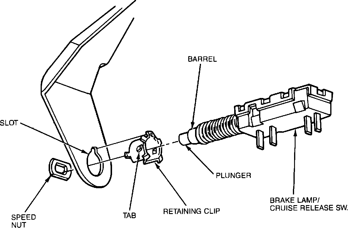 2. Remove the brake switch speed nut (on DeVilles and Fleetwoods only). The speed nut retainer is used to keep the switch in position. Refer to Figure 1.
