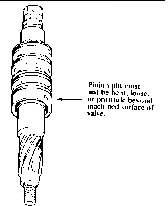 After valve removal, inspect the valve pinion pin. If the pin is loose, bent or protruding beyond the machined valve surface, the valve body should be replaced (see Figure 2).