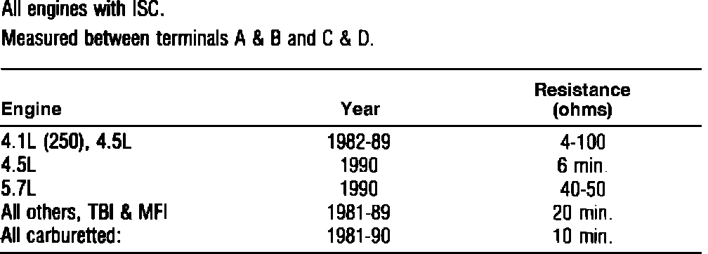 Idle Speed Control Specifications: