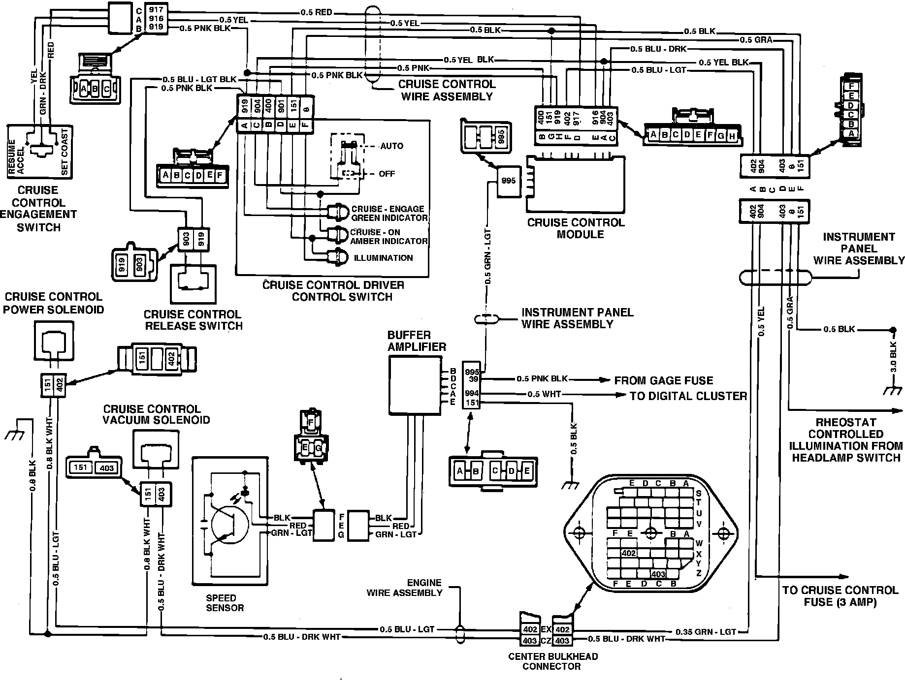 Fig. 5 Electronic cruise control wiring diagram. 1982---84 All with diesel engine except Eldorado & Seville with digital instrument cluster: