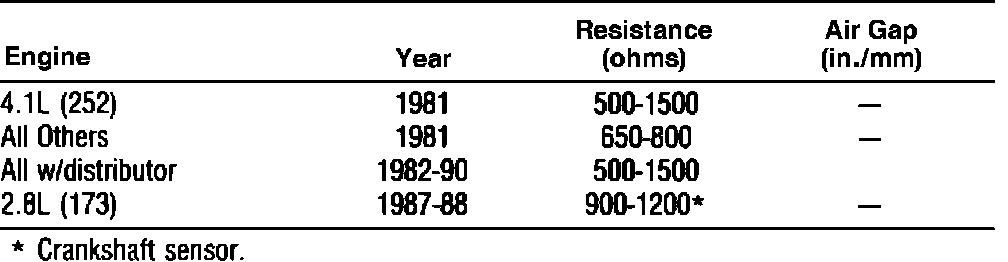 Distributor Pickup Specifications:
