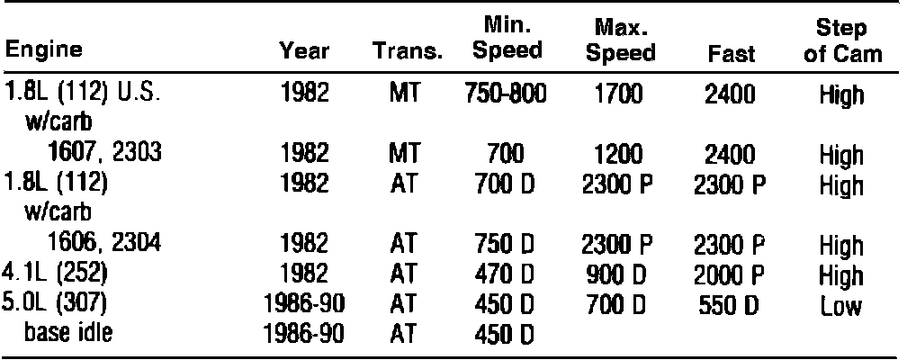 Idle Speed W/Computer Control Specifications - Carbureted: