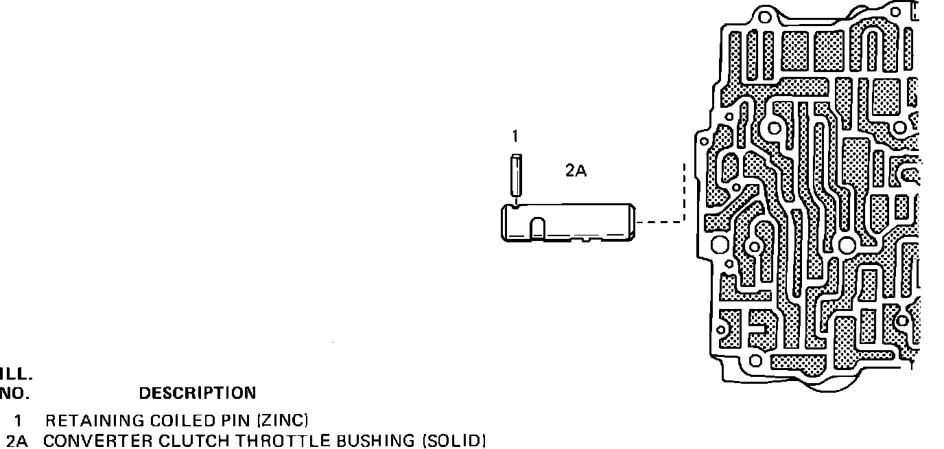 Beginning late in 1982 production, the TCC valve train was eliminated from the control valve assembly (refer to Figure 2). This second design control valve assembly contains only a bushing to direct TCC signal oil flow. The converter clutch apply valve and solenoid continues to be used as the control for TCC operation.