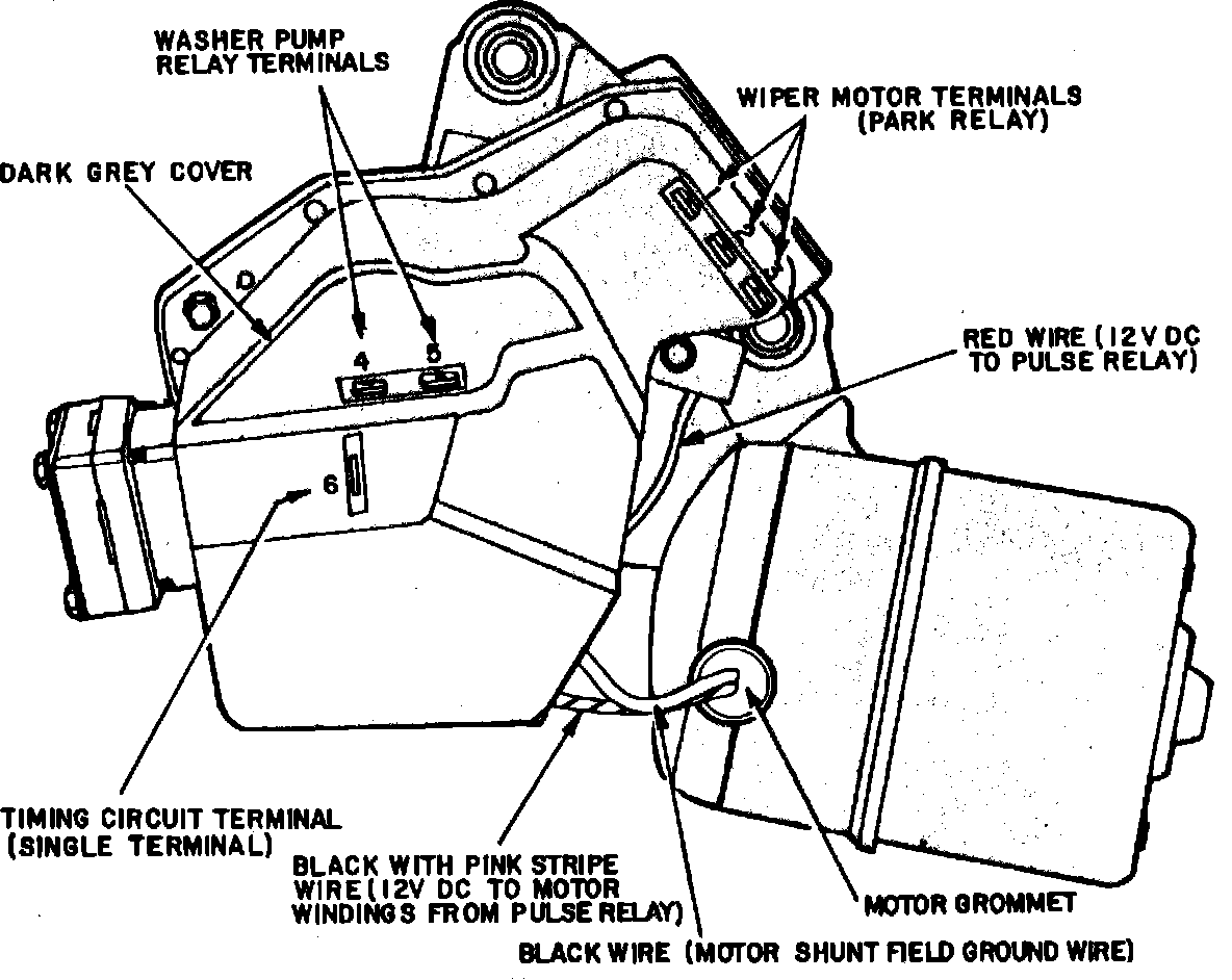 4. If wipers do not stop when timer is disconnected, remove washer pump cover and reconnect all electrical connectors to motor.