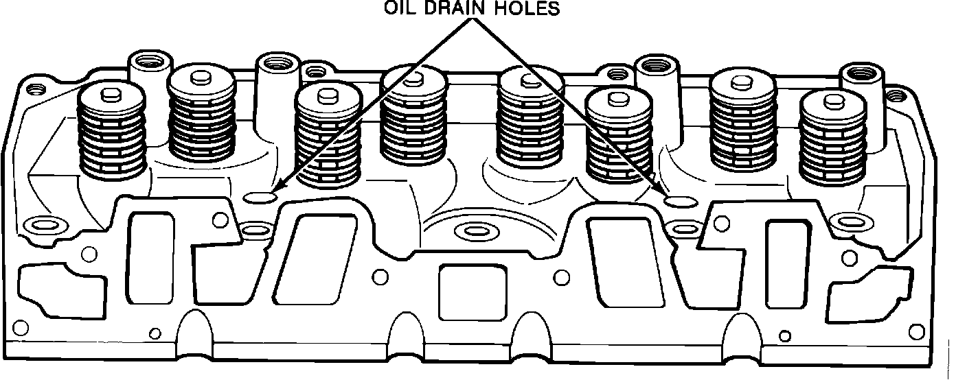 When performing any service that requires removal of valve covers on an HT4100 engine, it is recommended that any sludge build-up in or around the oil drainback holes in the cylinder head (see Figure 1 for locations) be cleaned out as necessary.