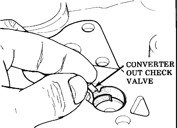 2. Check for mispositioned or damaged converter out check valve in case cover, see Figure 2. This requires removal of the transmission and case cover as outlined in the appropriate Service Information Manual.