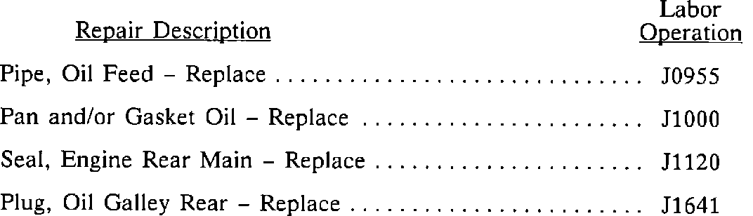 Labor Operations that may be used for engine oil leak repair are listed below. Refer to the appropriate Labor Time Guide to obtain the correct time to submit for warranty claims.