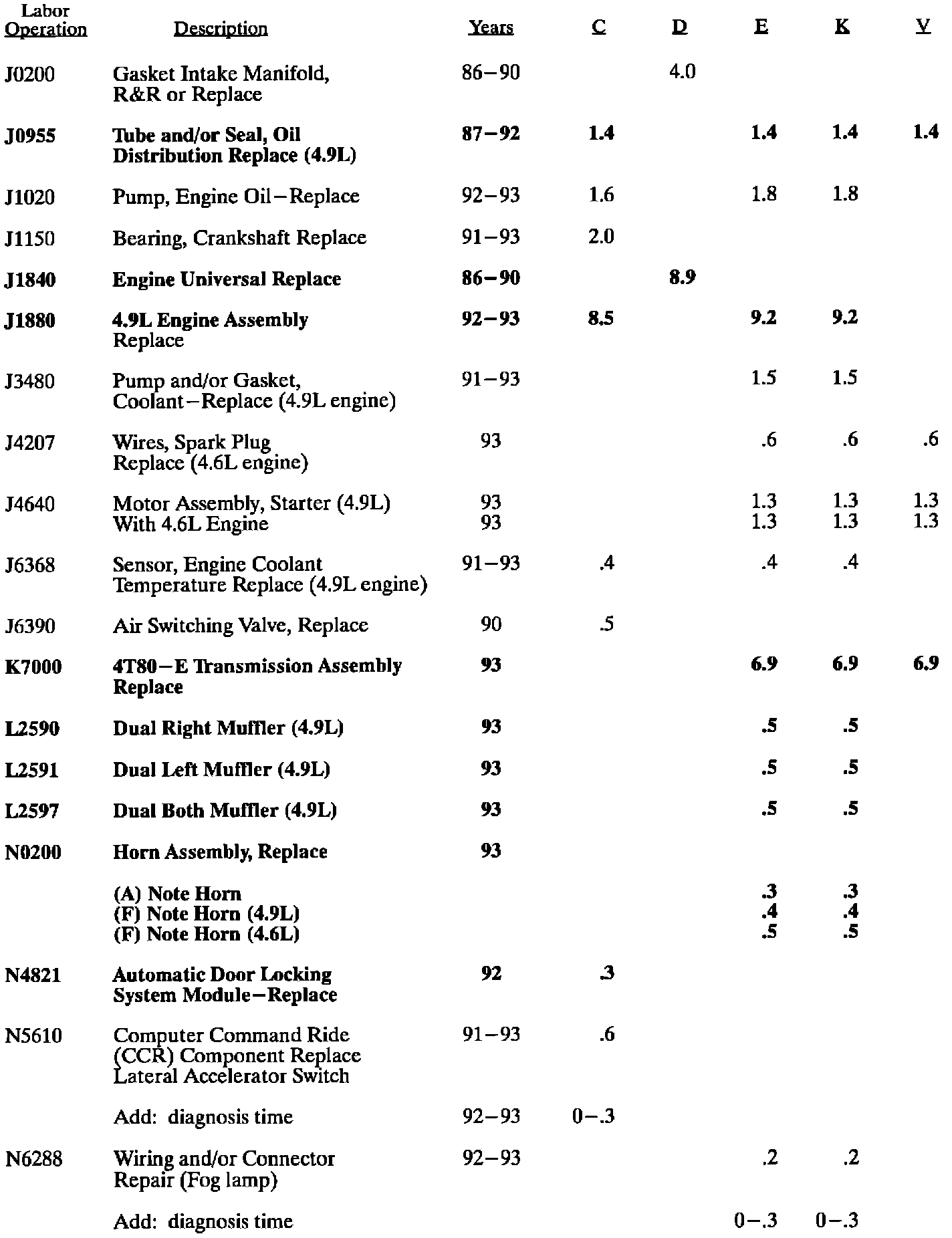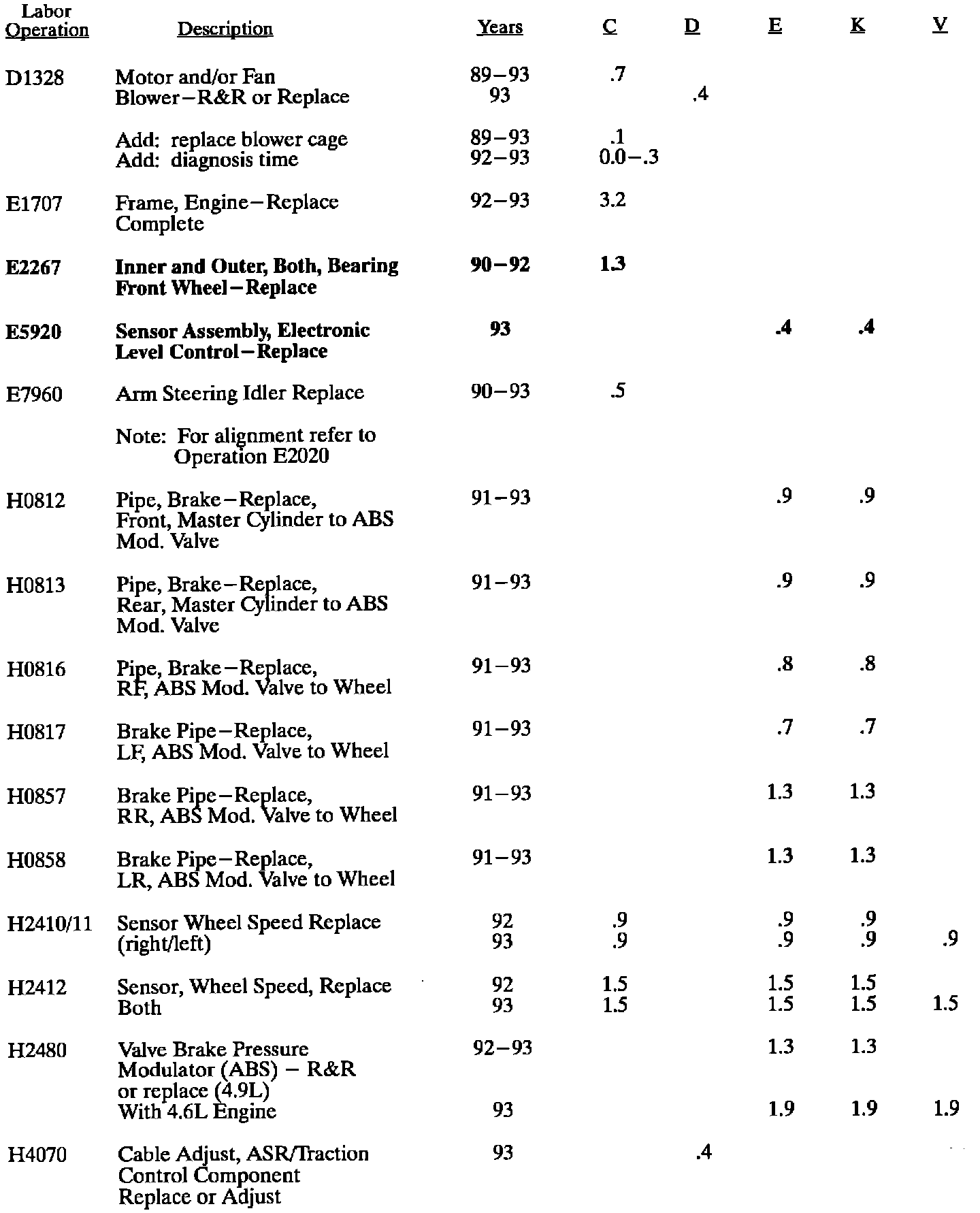 This bulletin contains new Labor Operations or labor times that have increased as a result of "Requests For Review" submitted by Dealers between January 1, 1993 and July 15, 1993. The time changes that apply to 1993 models will be included in future LTG updates but for 1992 and prior models this bulletin is the only place these times will be published. New operations are noted with bold print. "Request for Review" forms are located at the back of your Labor Time Guide. If you have any questions or concerns please contact Brad Merrill at (313) 554-6946.