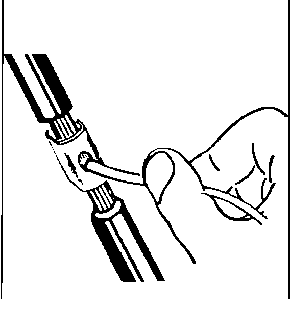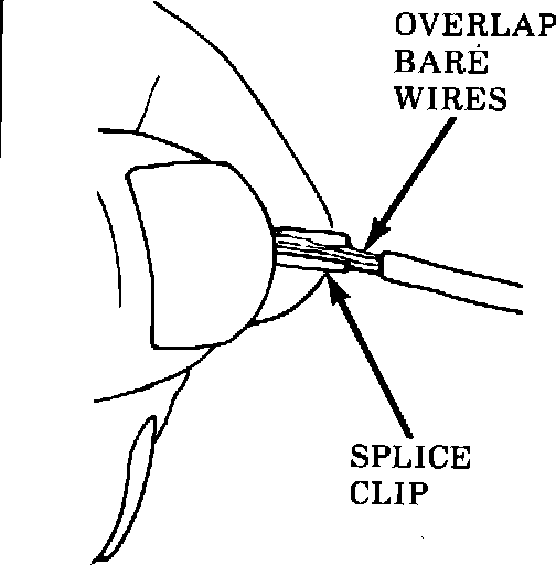 Locate the clip contained in the service kit. Select the correct anvil on the crimper. (On most crimpers your choice is liniited to either a small or large anvil.) Overlap the two stripped wire ends and hold them between your thumb and forefinger as shown (see Figure 1). Then, center the splice clip under the stripped wires and hold it in place. .