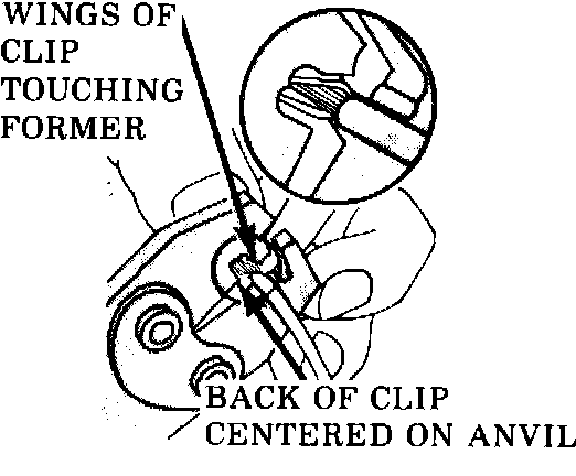 - Center the back of the splice clip on the proper anvil and close the crimping tool to the point where the former touches the wings of the clip.