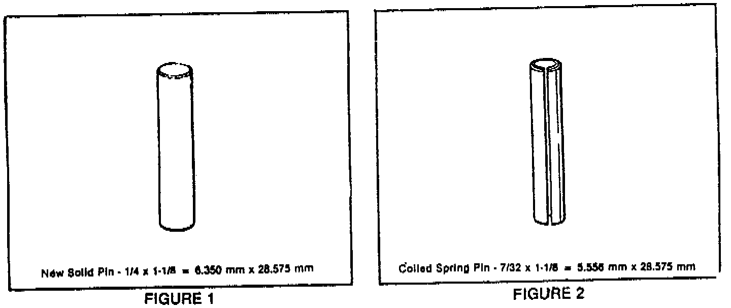 Beginning in April 1983, a new solid pin for the pressure regulator bushing went into production for all THM 325 4L transmissions. The purpose of the new pin is to eliminate the possibility of distorting the case face during assembly. The new solid pin is larger in diameter than the coiled spring pin, therefore, the two pins must be used interchangeably. (See figures 1 & 2)