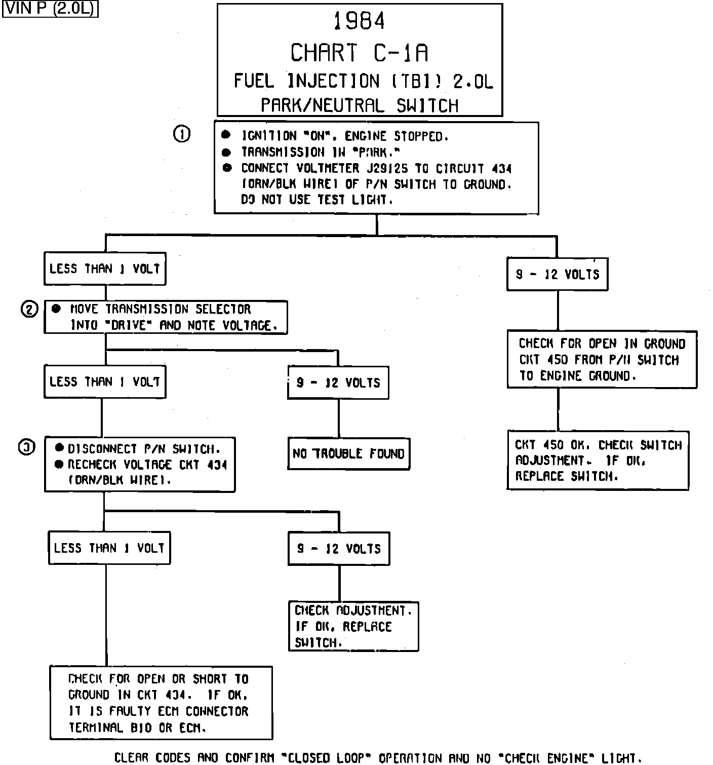 CHART C-1A, PARK/NEUTRAL SWITCH
